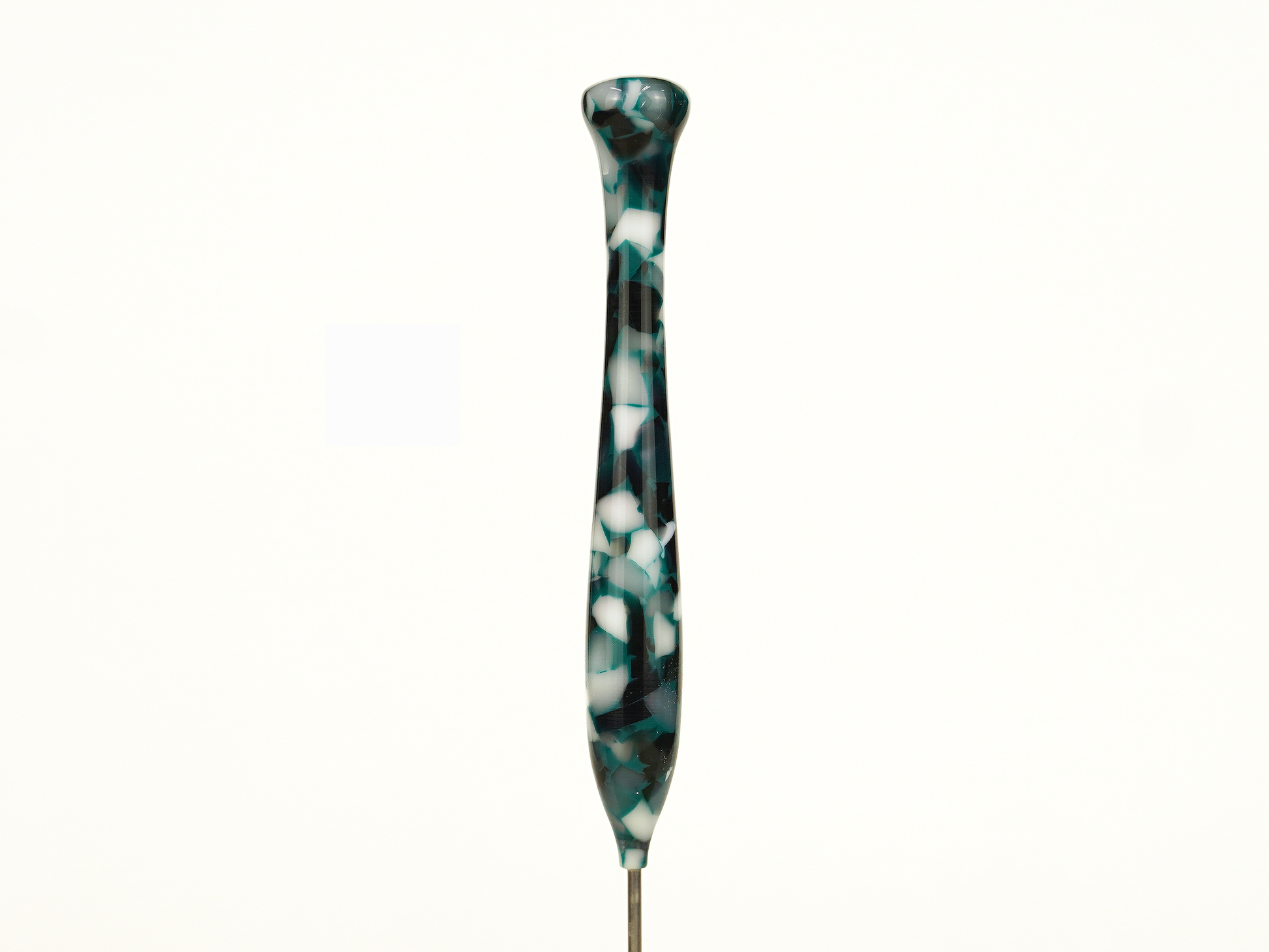 This handmade needle tool is crafted from solid acrylic, featuring a obsidian colored colored handle with playful bits of white and green throughout — like a little party in your tool kit. Each one is unique, just like the pieces you create.